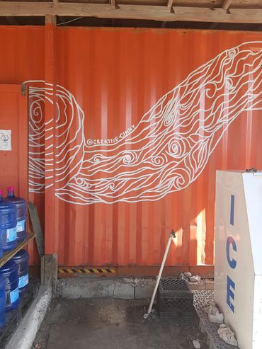 The composition features an oriental-inspired line work design, symbolizing the flowing movement of water and the lightness of clouds. Rendered in continuous, unbroken strokes, the pattern embodies both freshness and efficiency — qualities that reflect the company’s production of clean water. The choice of peach-coral as the background creates warmth and approachability, while the crisp white line work ensures clarity and direction, subtly guiding drivers through the space.
