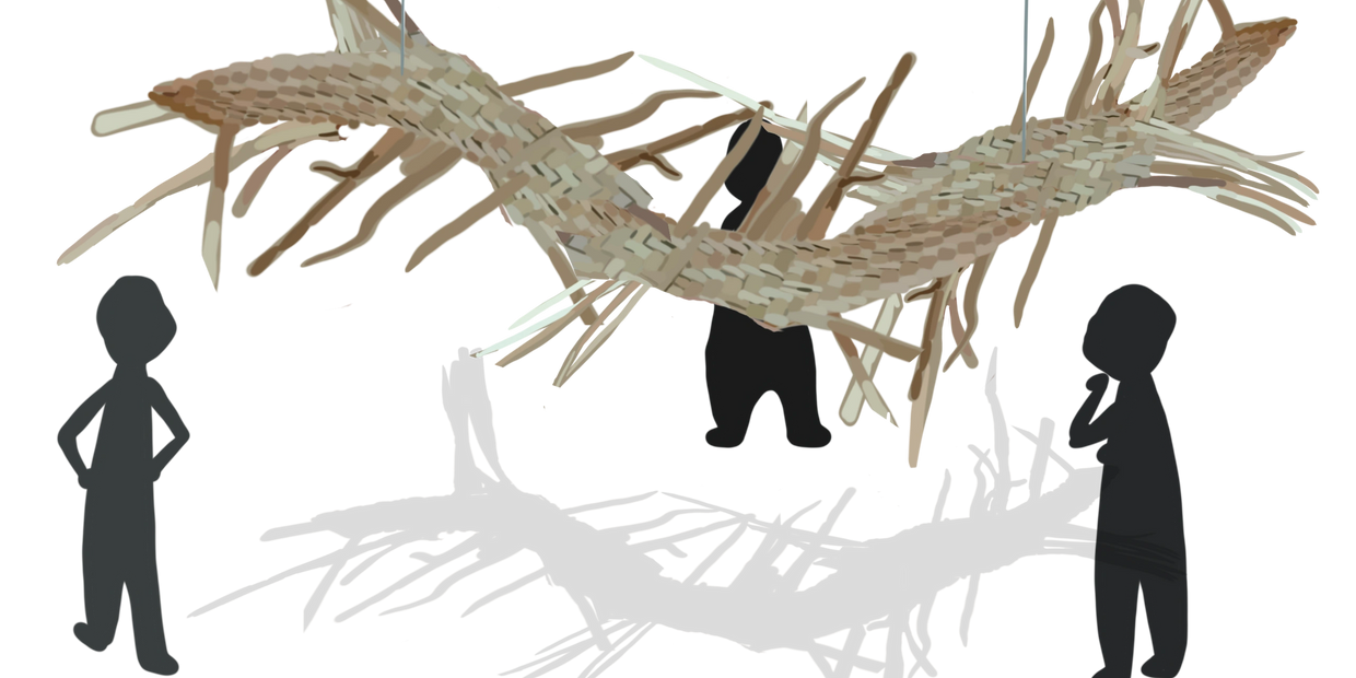 Three sculptures representing the epitome of Bahamian Creativity, the effect of the culture not making the straw industry sustainable and the original state, reflecting the past’s functionality.